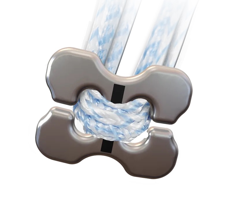 Düşük profilli AC implantı ve Dog Bone düğmesi, akut ve kronik AC eklem ayrılmalarının azaltılması ve stabilizasyonu için optimize edilmiş gerilebilir bir cihaz oluşturmak üzere birleşir. Bu çift yapı, iki bağımsız dikişini bir klavikula içine önceden monte edilmiş olarak ve bir Dog Bone düğmesini içerir. Düğme, dikiş döngülerini ayrı ayrı geçirildikten sonra 3 mm kemik tünellerinden antegrad geçirilir.