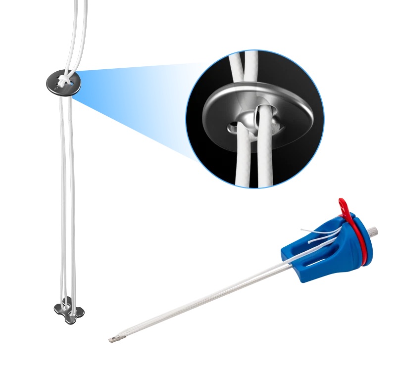 Ön şekillendirilmiş titanyum Dog Bone düğmesi, düğmesiz teknolojisi veya akromioklaviküler AC eklem reduksiyonu için çoklu dikişlerin kullanımına izin verir. Düğme, dikişlere bağlıdır; yalnızca dikiş malzemesi klavikula ve korakoid tünellerinden geçirilir ve bu da tamirin daha küçük tüneller aracılığıyla tamamlanmasına olanak tanır.