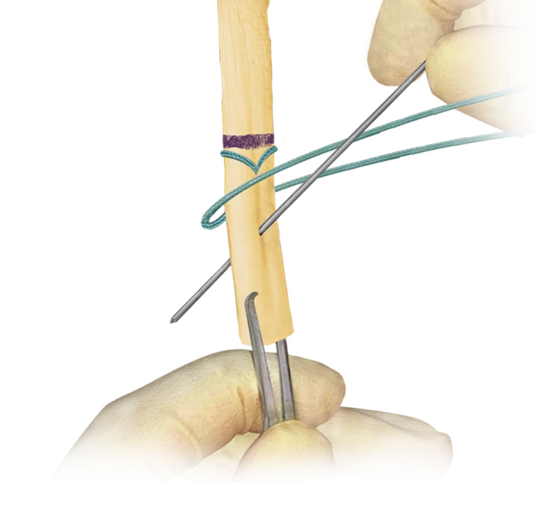 Diz arkası kirişinin alınması ve hazırlanması için en gelişmiş teknikleri ve aletleri sunmaktadır. Hasat işlemi, hem geleneksel anterior yaklaşımla hem de minimal invazif hamstring hasat tekniği ve özel tendon sıyırıcıları kullanılarak posterior yaklaşımla güvenli ve tekrarlanabilir bir şekilde gerçekleştirilebilir. Greft Hazırlama İstasyonu, çeşitli değiştirilebilir kelepçeler ve postlar ile greftin gerdirilmesini ve dikilmesini kolaylaştırmak için tasarlanmıştır. Sütür hattı ve tekniği, greft hazırlığı konusunda bir devrim yaratmıştır. #2 veya #0 dikişin sürekli halkaları ve serbestçe yüzen düz veya kavisli iğneler, geleneksel düz dikişlere göre yarı sürede tekrarlanabilir greft dikişi yapılmasına olanak tanır.