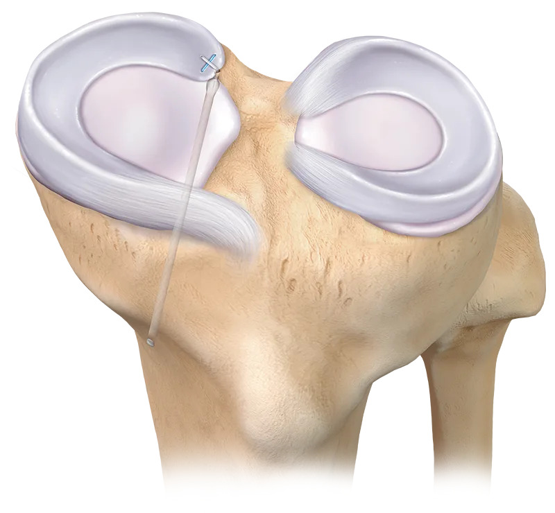 SutureLoc™ implantı, menisküs kökünün doğrudan tibial fiksasyonuna imkan tanır. 2,4 mm’lik kanüllü matkap pimi, SutureLasso™ telini menisküs kökünün ayak izine doğrudan ileterek daha fazla kemiği sağlam bırakır. Çapa geçildikten sonra, 2 onarım sütürleri çeşitli dikiş desenleriyle dokudan geçirilebilir. Düğümsüz implant geri çekilebilir ve cerrahların onarımı kolaylaştırmasına olanak tanır. Ayrıca, geleneksel transtibial implant sistemleri için FlipCutter® II rayba ve çoklu sabitleme seçenekleri de bulunmaktadır.
